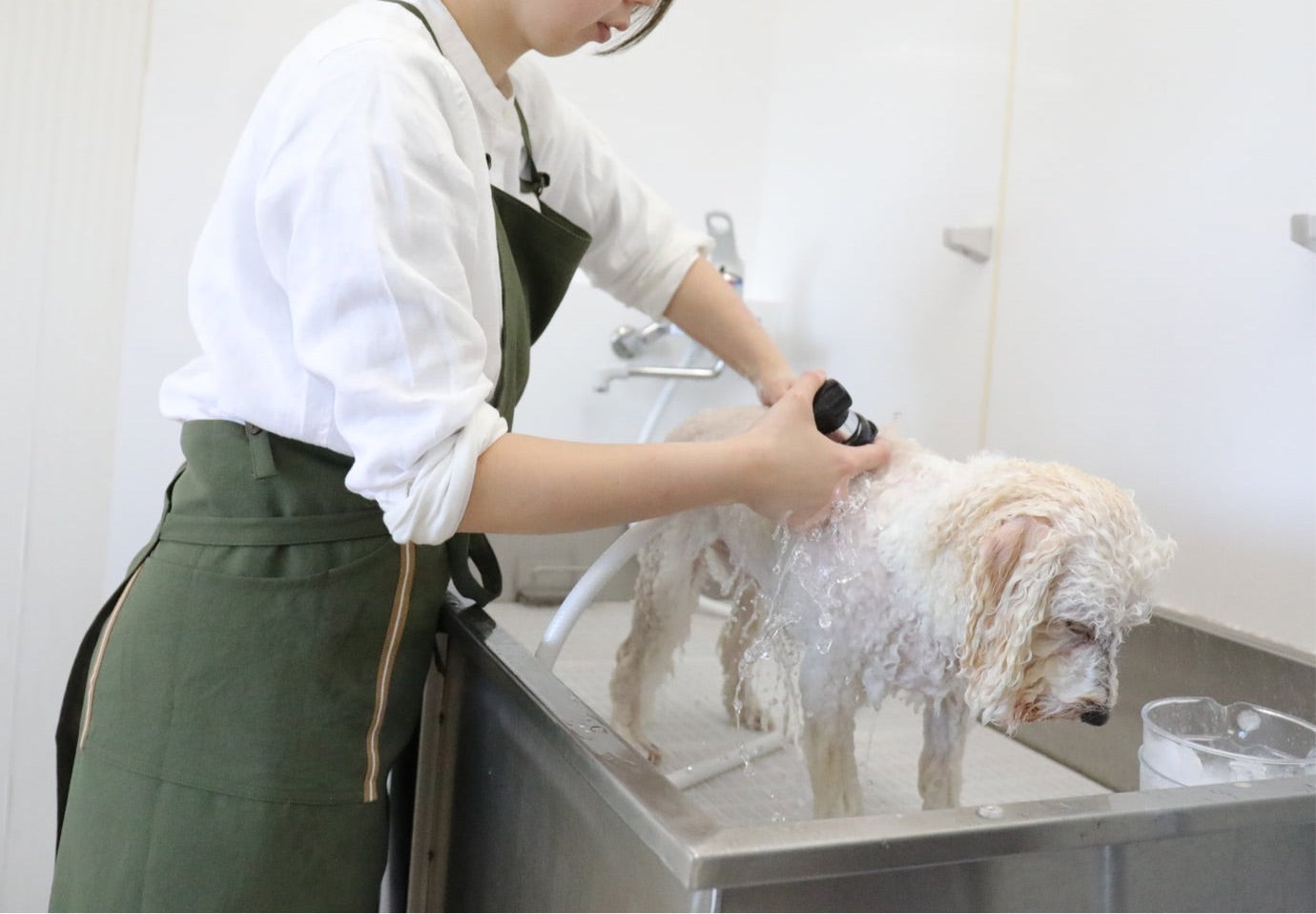 #601 在庫限り カーキ【プロライン/スタンダードタイプ】トリマー さんの声から生まれた!吸水速乾・軽量・毛が落ちやすいワーキングエプロン