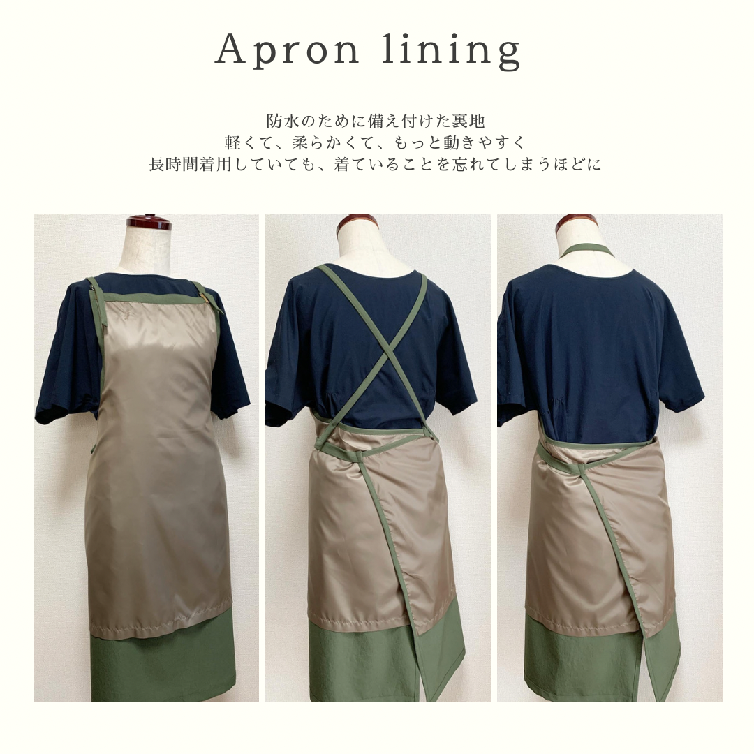 透湿性…防水エプロンで気になる蒸れも、ノンコーティング布地なので、湿気を逃して蒸れにくいです