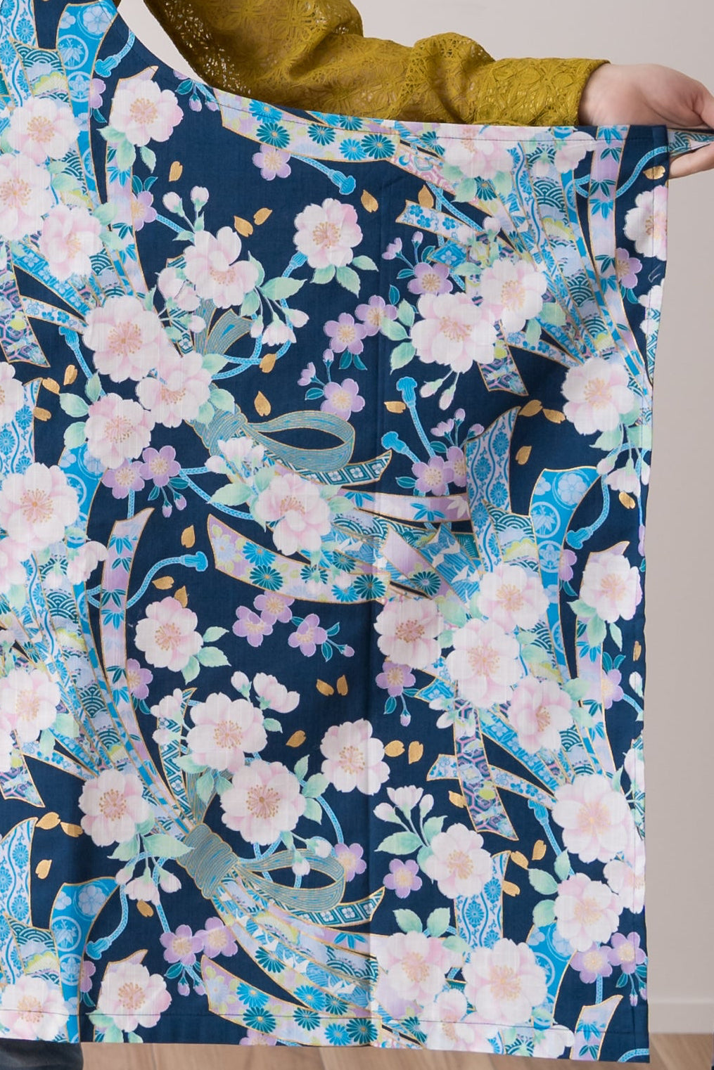 #109【若葉 -Wakaba-】発送3日以内発送 送料無料 丙午開運和モダンエプロンぬれんがね 桜と束熨斗の吉祥柄 紬クロス 綿素材プリント カフェ レストラン ユニフォーム 旅館 和風 NURENGANE Japanese modern ,KIMONO pattern apron