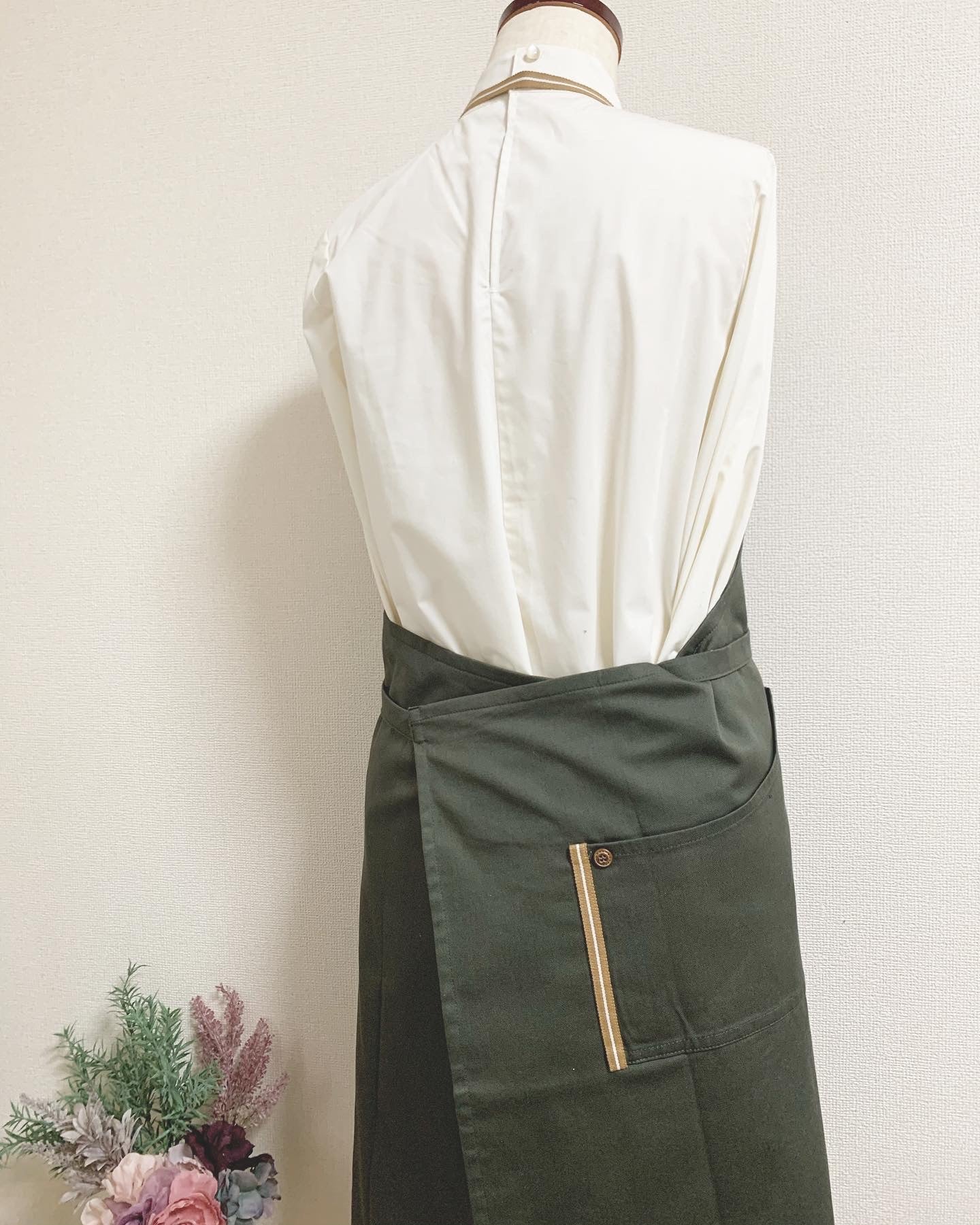 #403 在庫限り チノ カーキ/ ぬれんがねエプロン 抗ウィルス対策 CLENSE-クレンゼ- 綿素材
