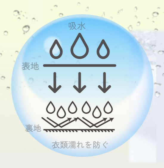 「表地で給水して、裏地で水から守る」新感覚の防水機能で従来の防水エプロンを改良したストレスフリーな着心地。