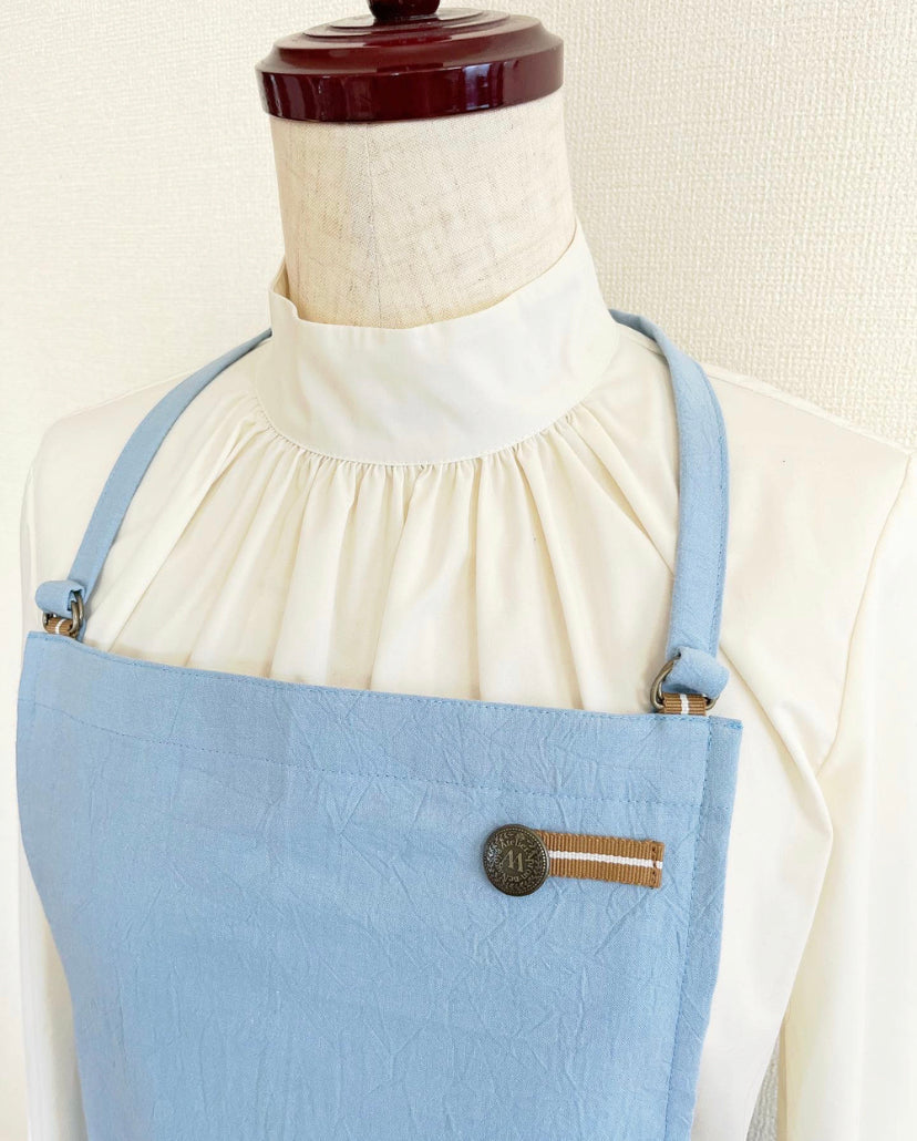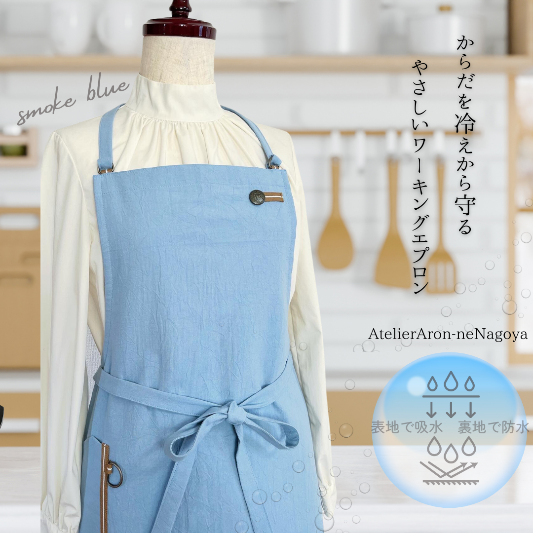 #016発送14日以内 スモークブルー/ ぬれんがね ベーシック 表地で吸水、裏地で水から守るエプロン 手もみ風コットン布地 NURENGANE BASIC