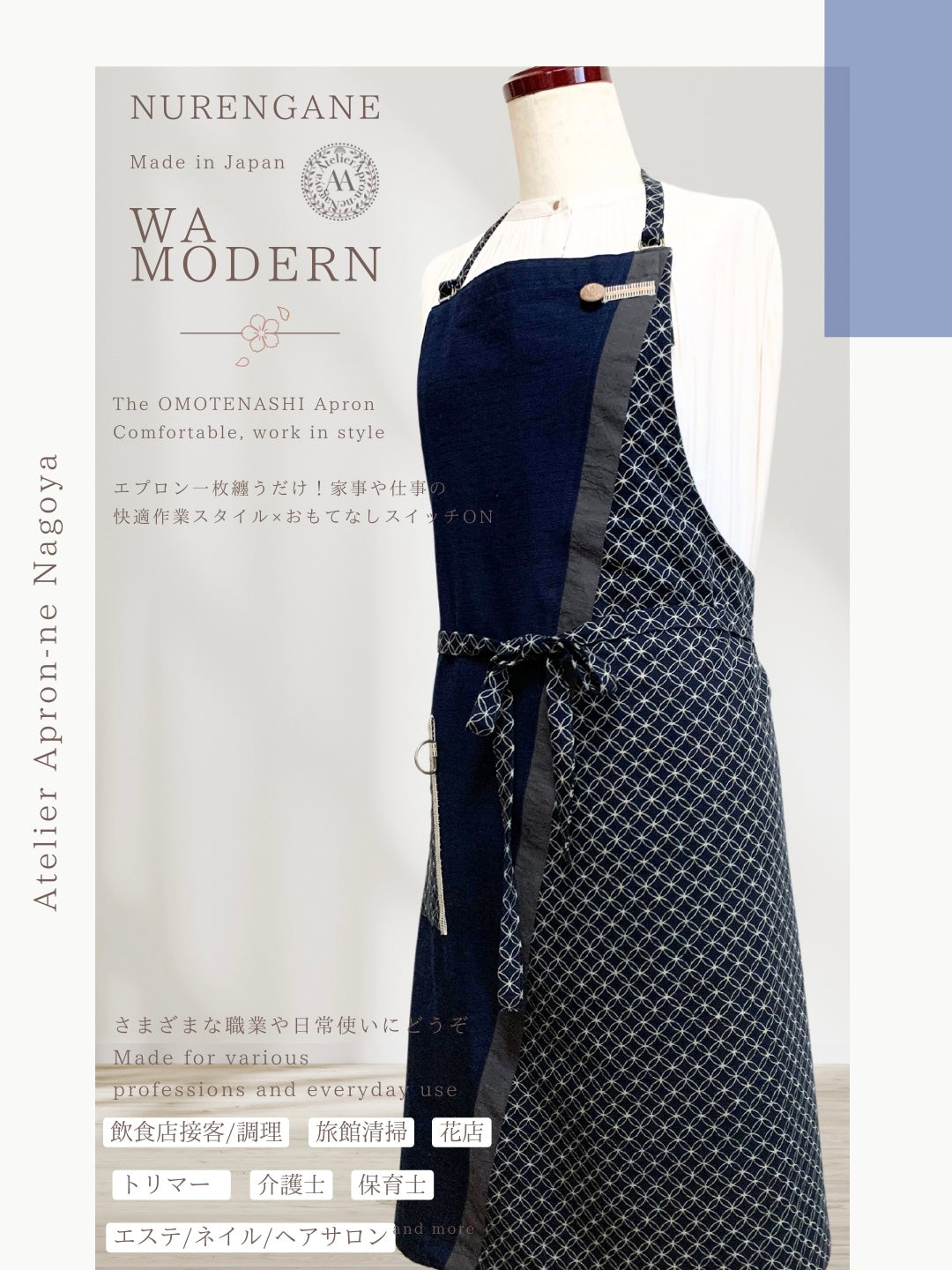 当店の防水エプロンの機能性をそのままに、和モダンなテイストに