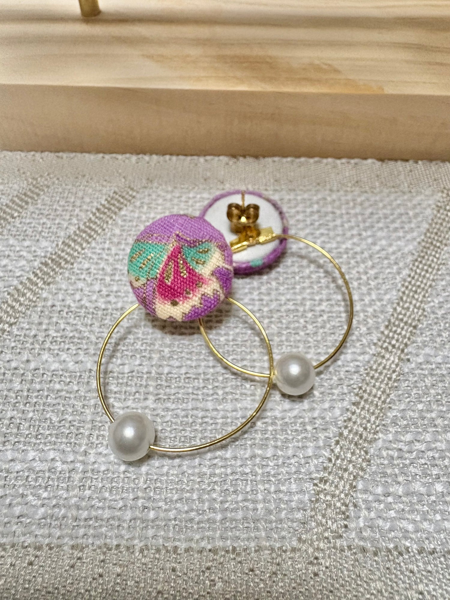 職人の手作業で一つひとつ丁寧に仕立てたハンドメイドのくるみボタンピアス