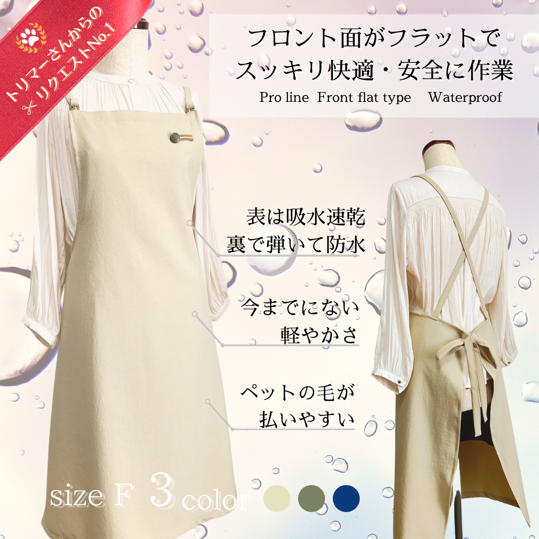 #606 ベージュ/プロライン 防水エプロン 吸水速乾・軽量・毛が落ちやすい フロントフラットタイプ
