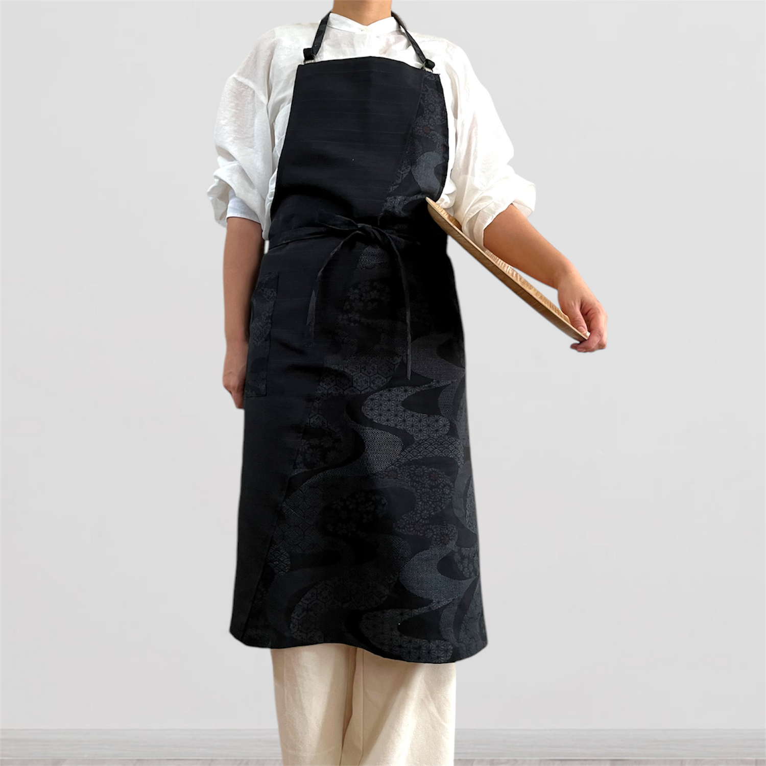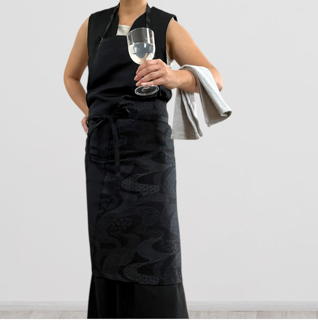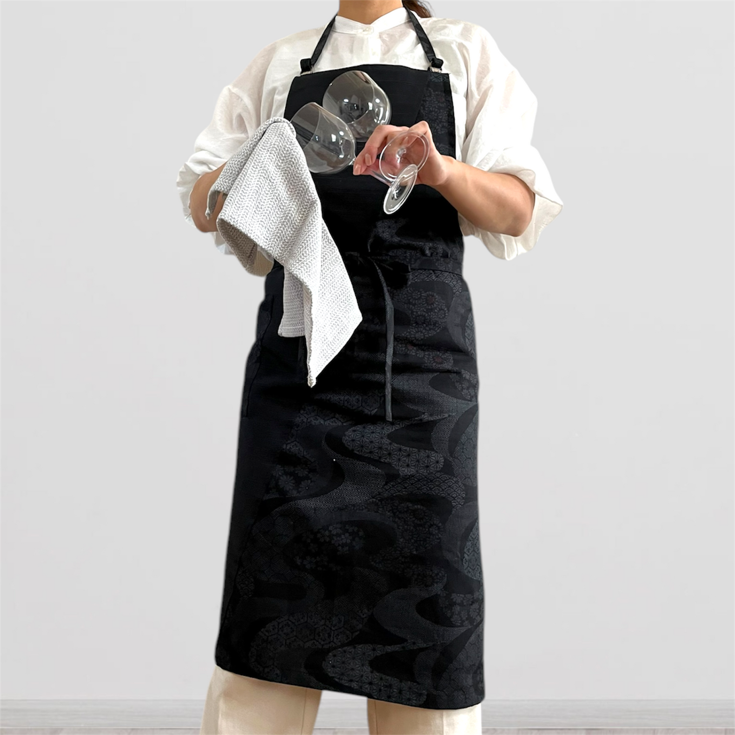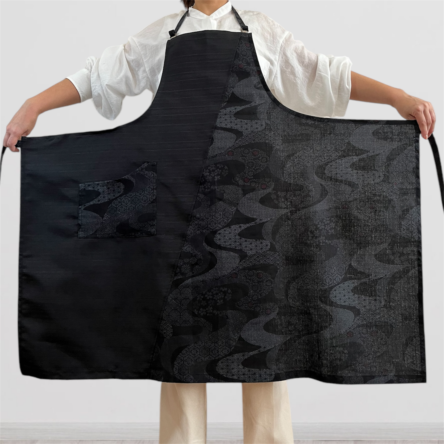 UNWR6010ブラック/和柄 流水文様 ぬれんがね 和モダン 表地で吸水、裏地で水から守るエプロン NURENGANE WAmodern