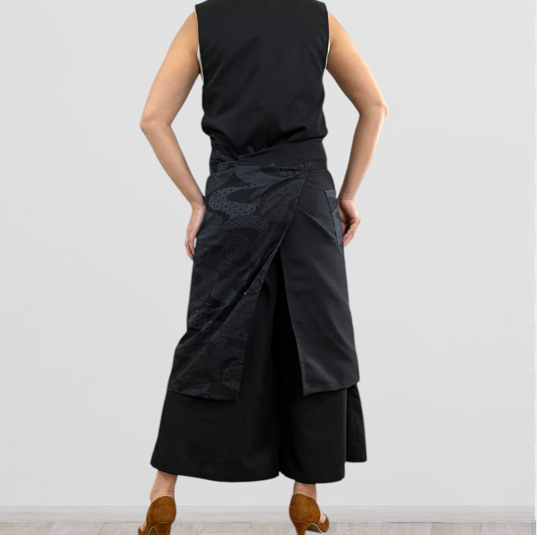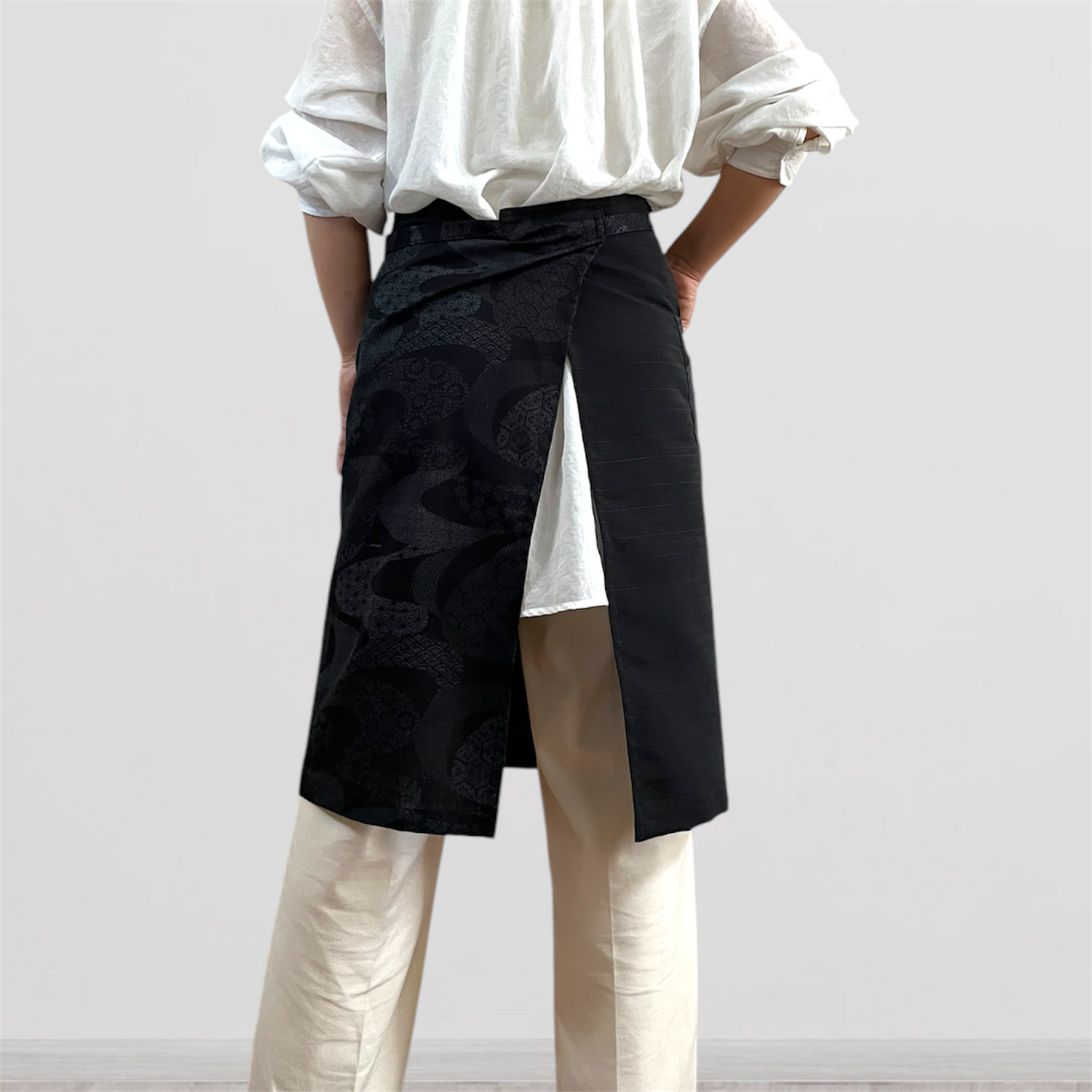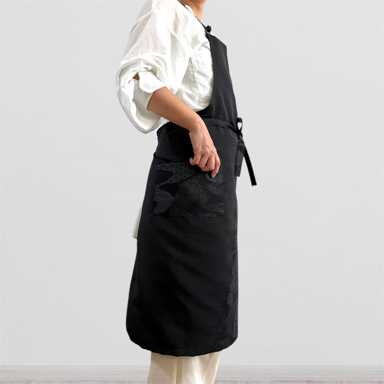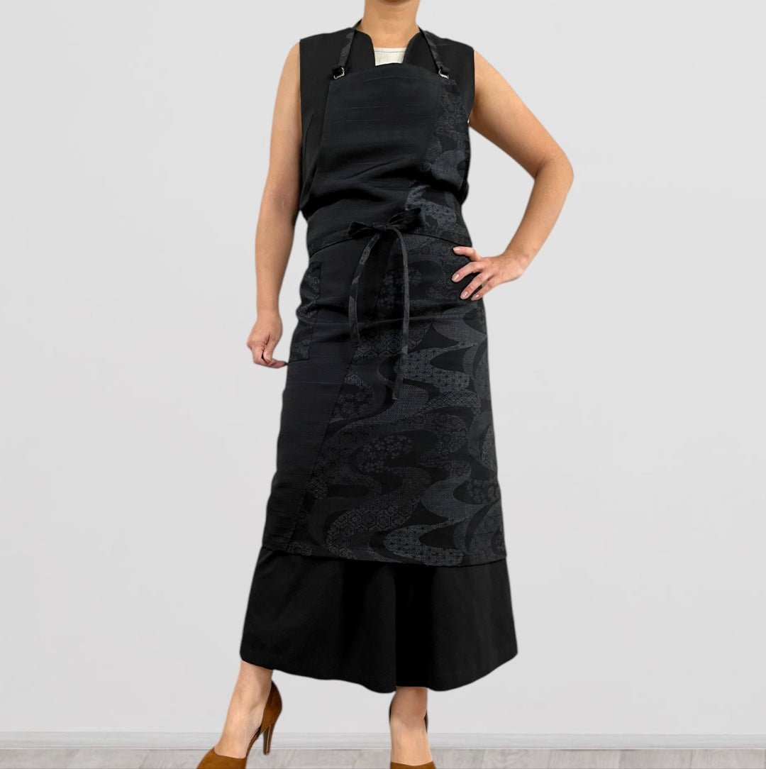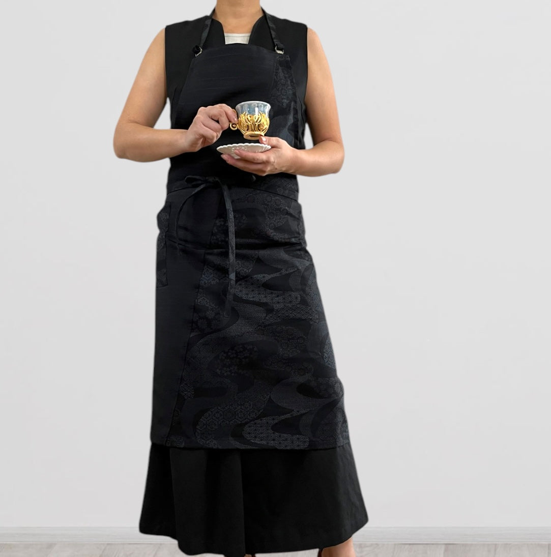 UNWR6010ブラック/和柄 流水文様 ぬれんがね 和モダン 表地で吸水、裏地で水から守るエプロン NURENGANE WAmodern