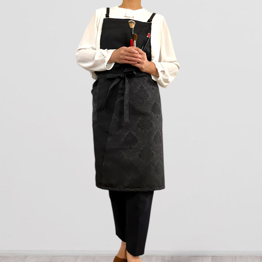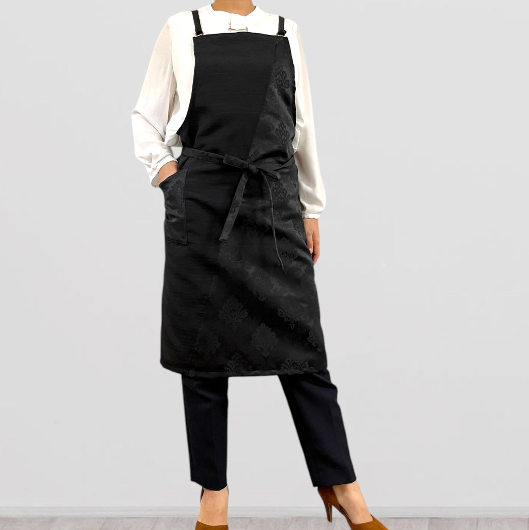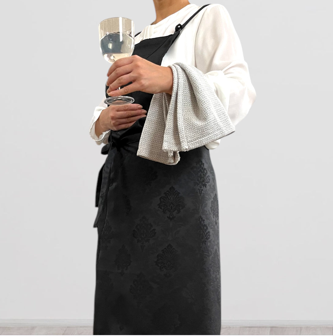 UNWR6011ブラック/発送14日以内 和柄 ダマスク文様 ぬれんがね 和モダン 表地で吸水、裏地で水から守るエプロン NURENGANE WAmodern
