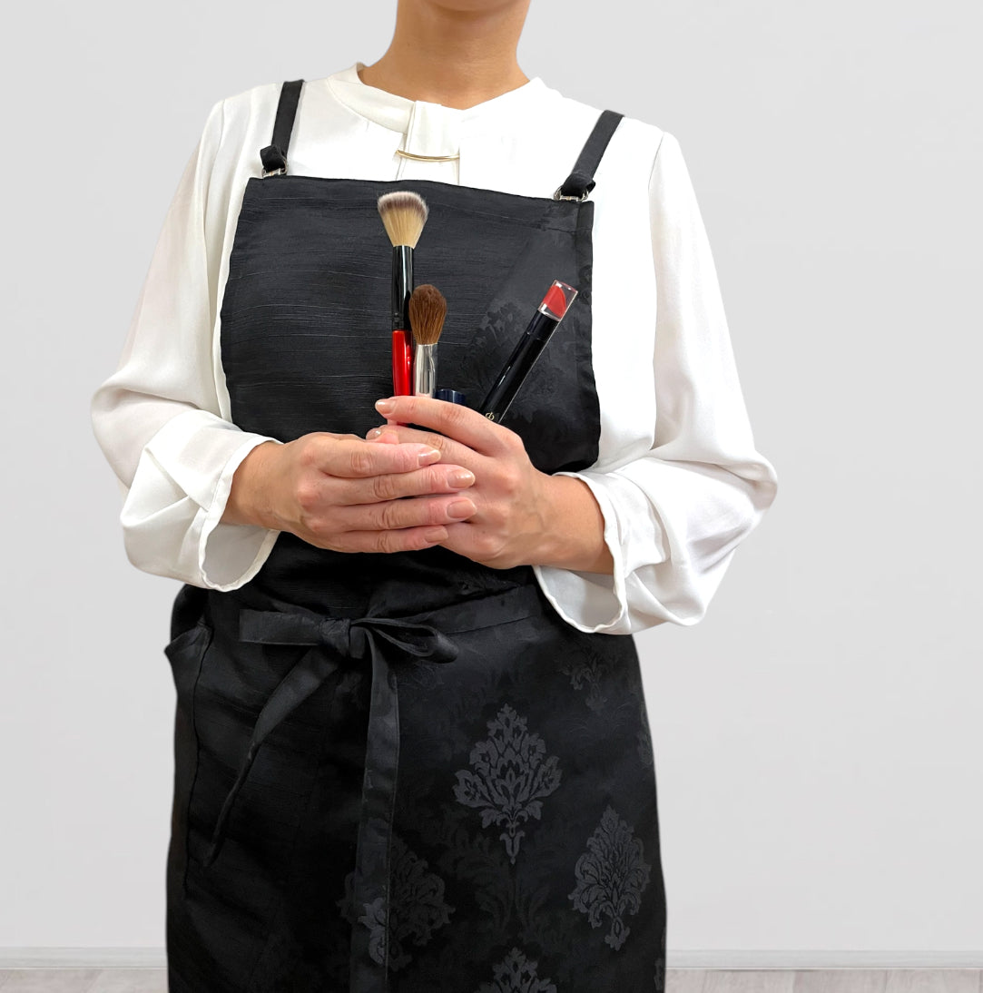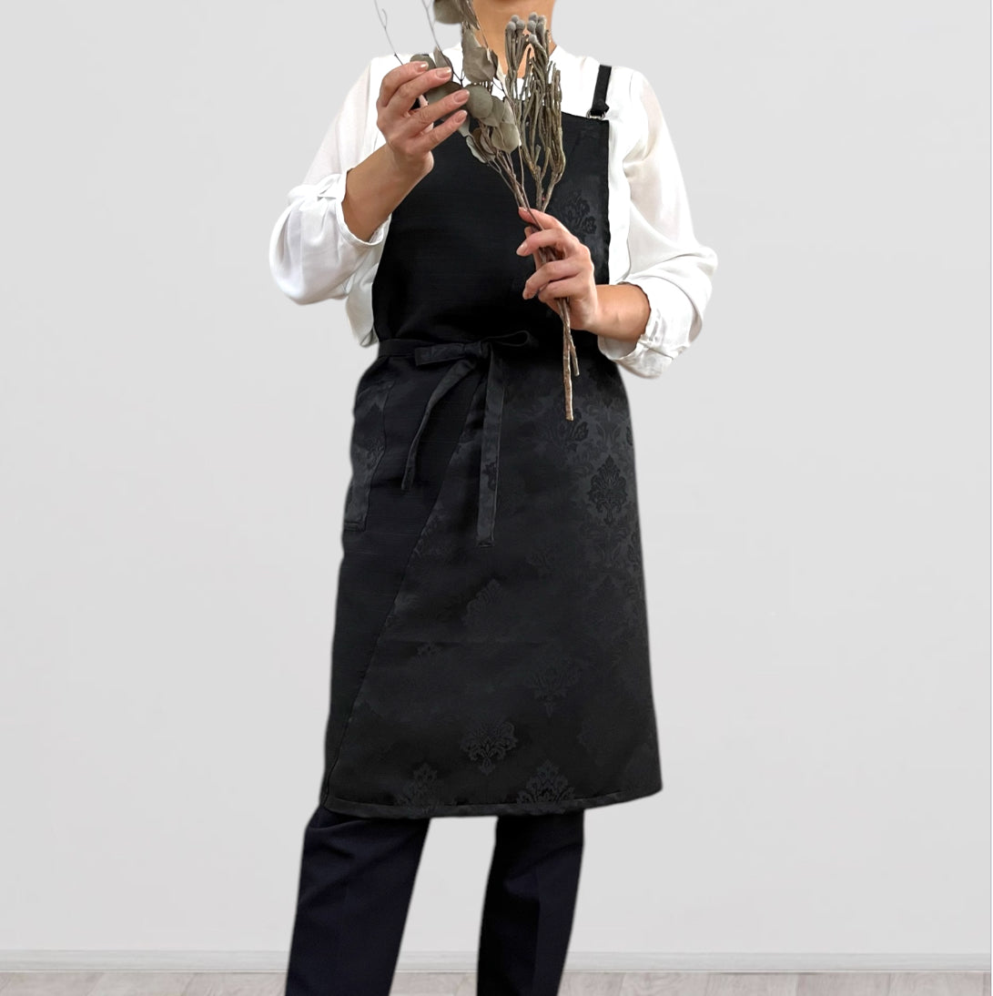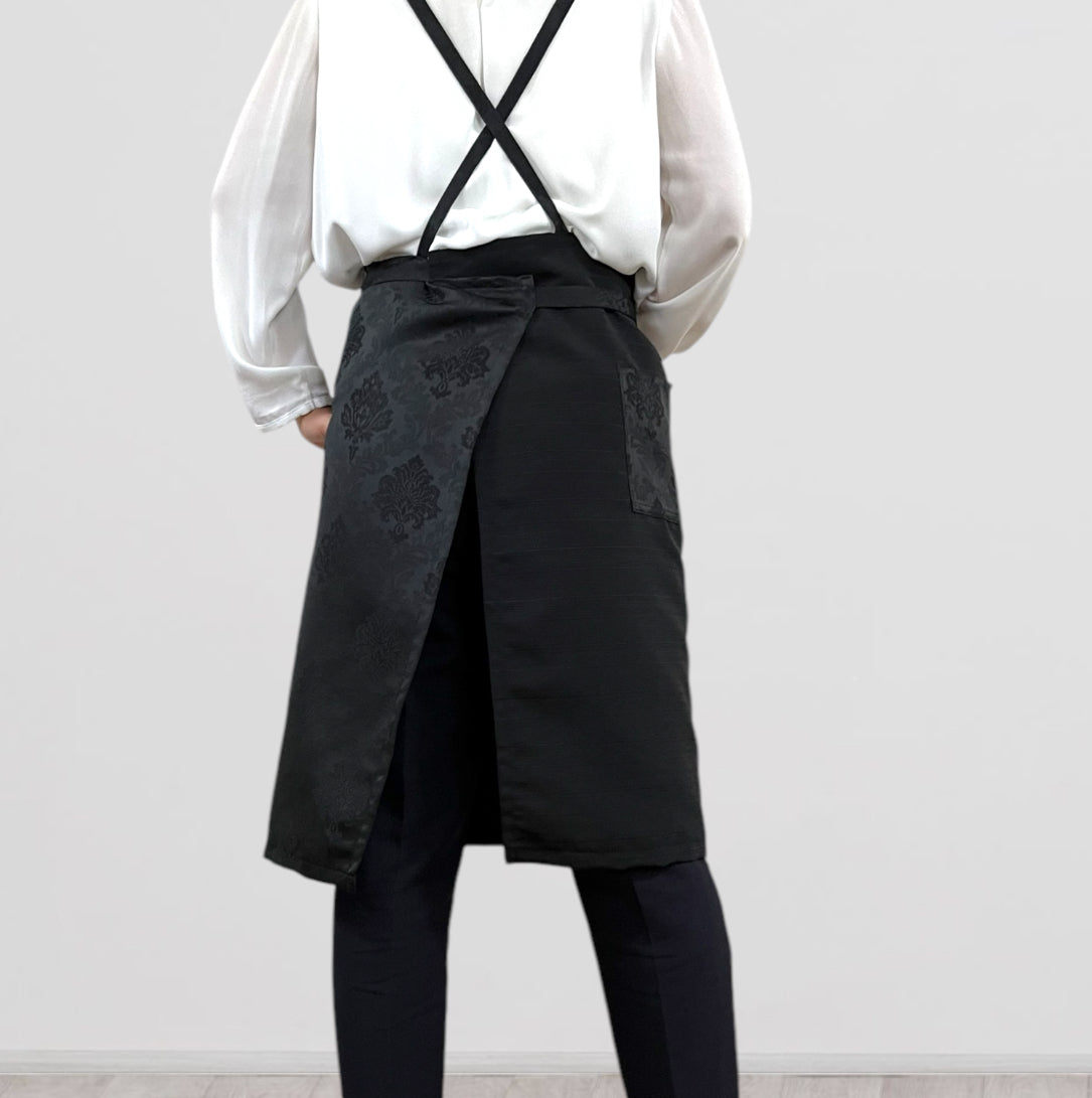 UNWR6011ブラック/発送14日以内 和柄 ダマスク文様 ぬれんがね 和モダン 表地で吸水、裏地で水から守るエプロン NURENGANE WAmodern